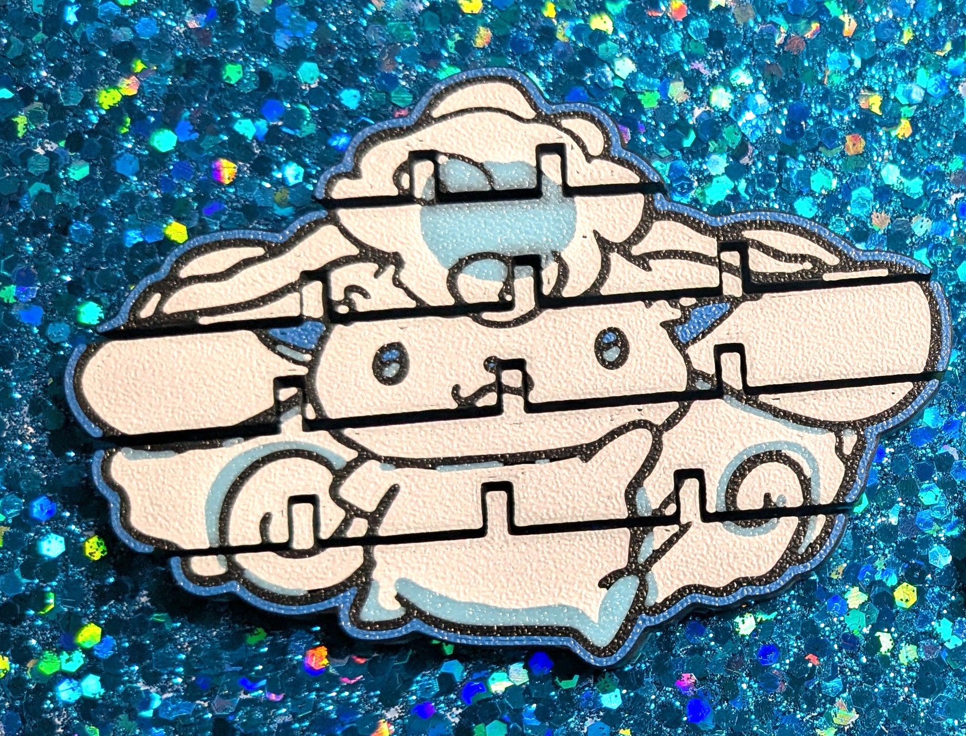 Two of the cutest characters mixed together into the very first fidget toy I ever made! Image shows front and back.